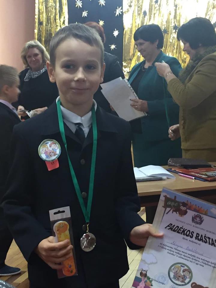 kuris Vilniaus miesto raiškiojo skaitymo konkurse „Vaikeliams apie žvėrelius“ vykusiame Vilniaus Levo Karsavino mokykloje užėmė