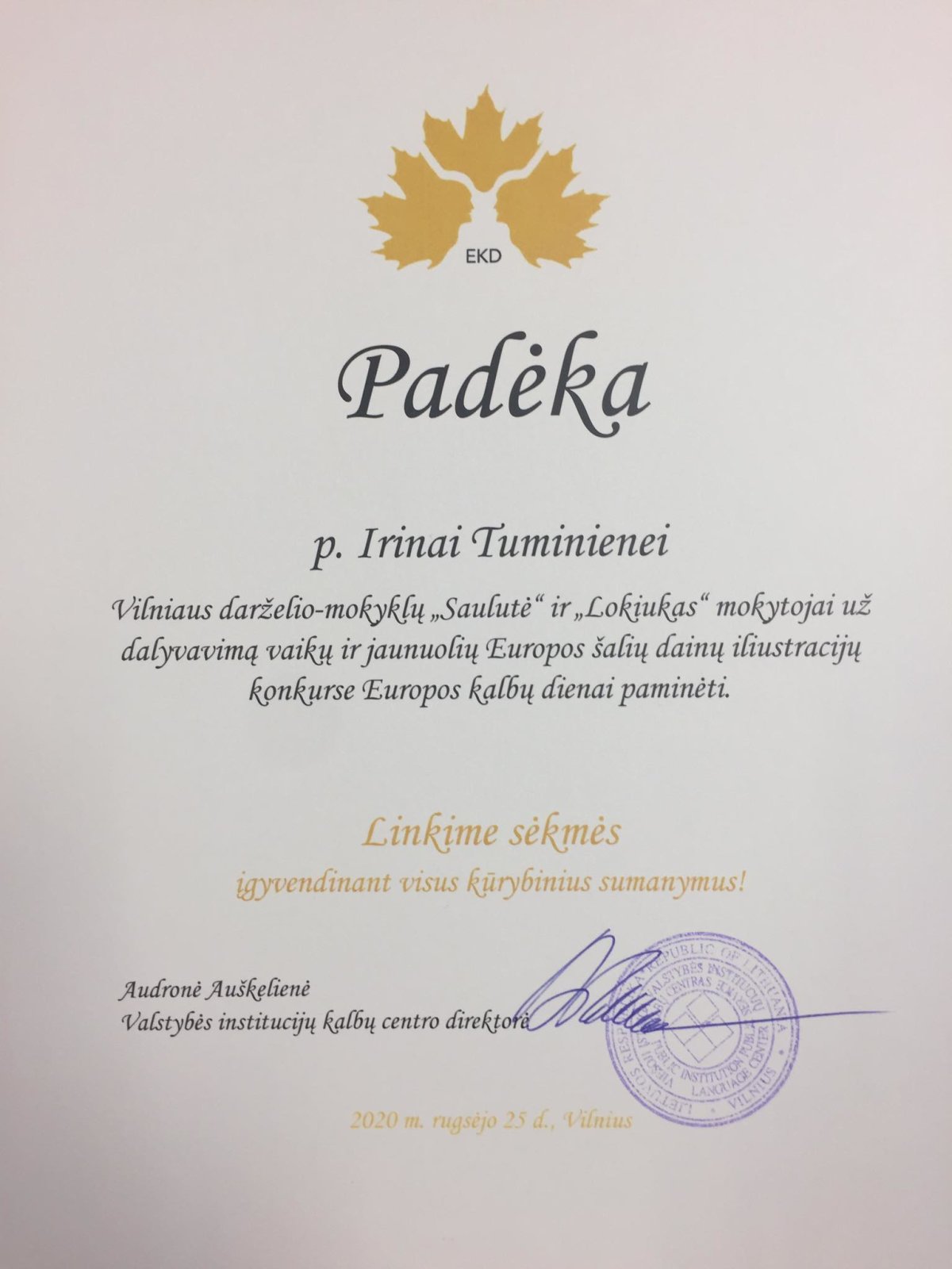 Šiais metais mūsų mokiniai dalyvavo Lietuvos Respublikos Seimo globojamame respublikiniame piešinių konkurse, skirtame šiai datai. Didžiuojamės galėdami pranešti, kad mūsų 3A klasės mokinys savo amžiaus grupėje gavo konkurso laureato garbės vardą ir buvo pakviestas su šeima bei anglų kalbos mokytoja Irina Tuminienė į parodos atidarymą Seime, kur mokiniui buvo įteiktas diplomas. Sveikiname!