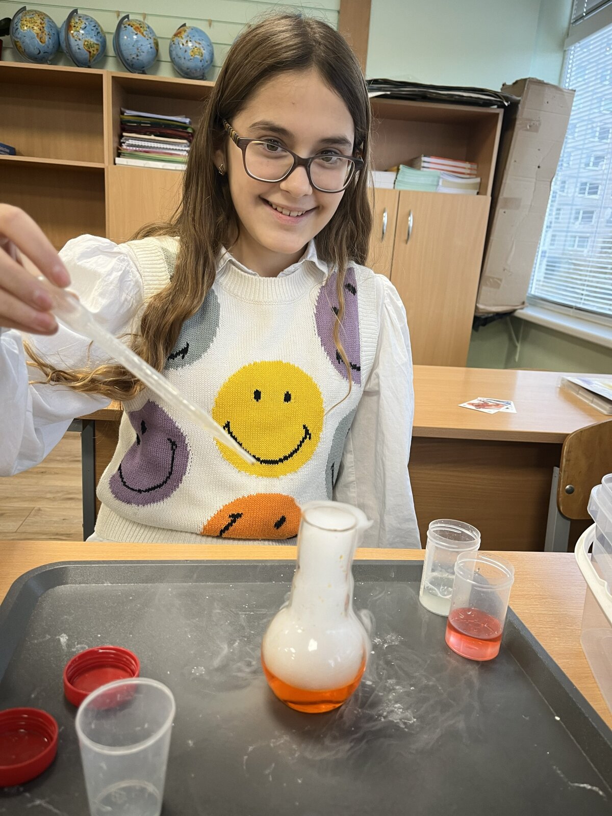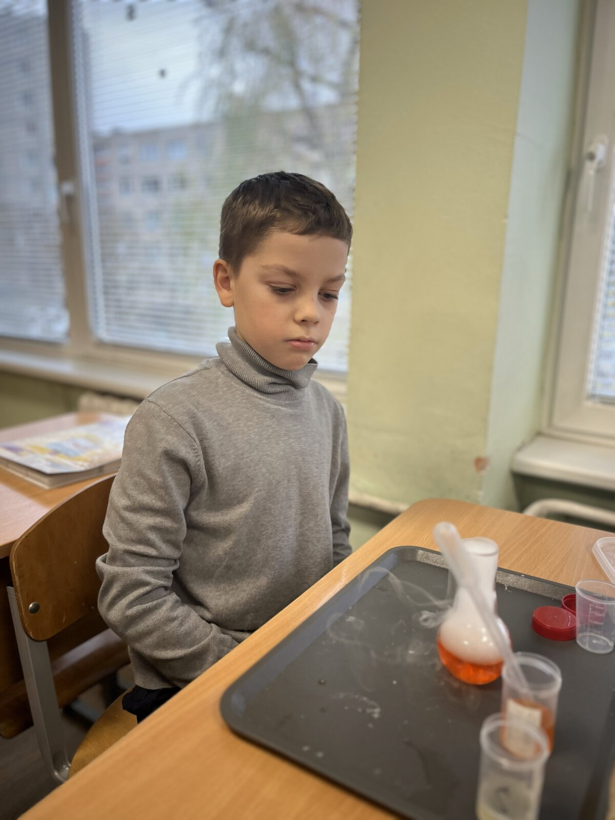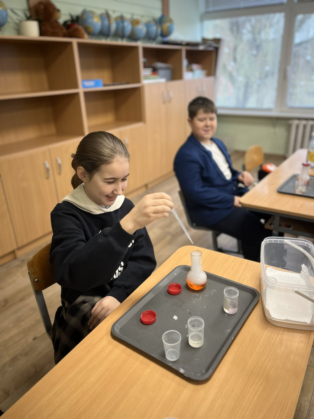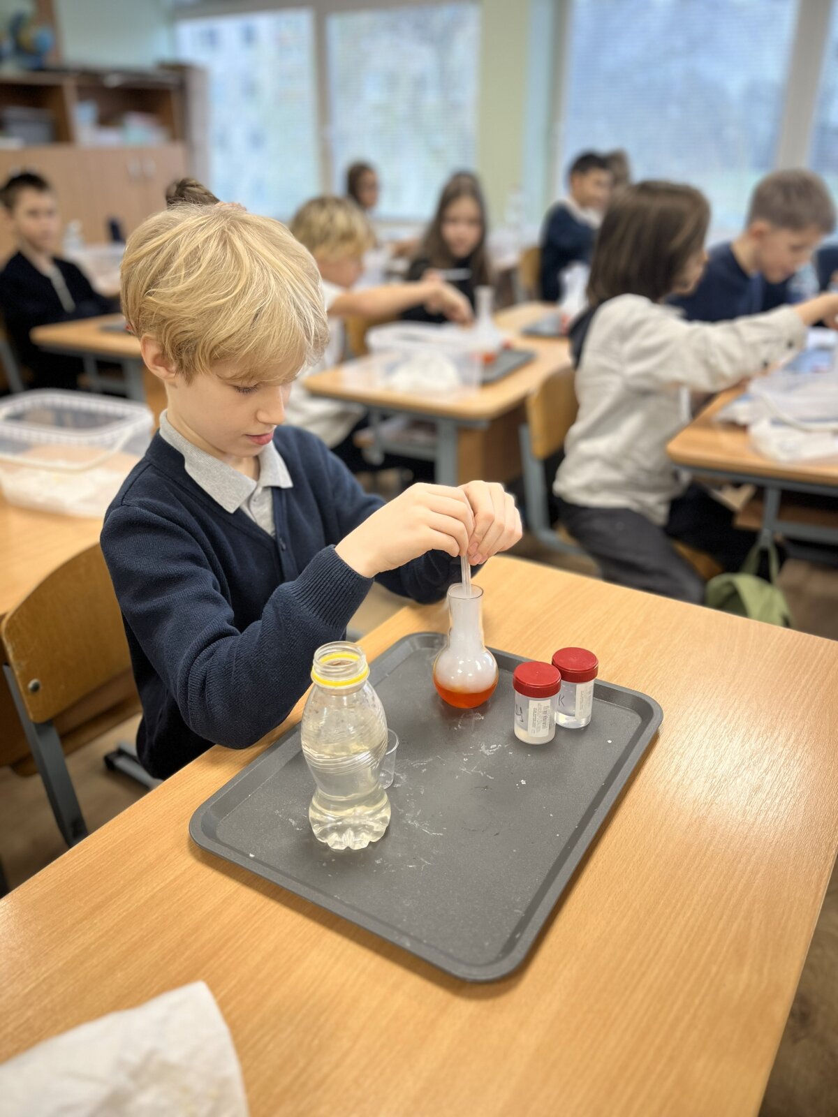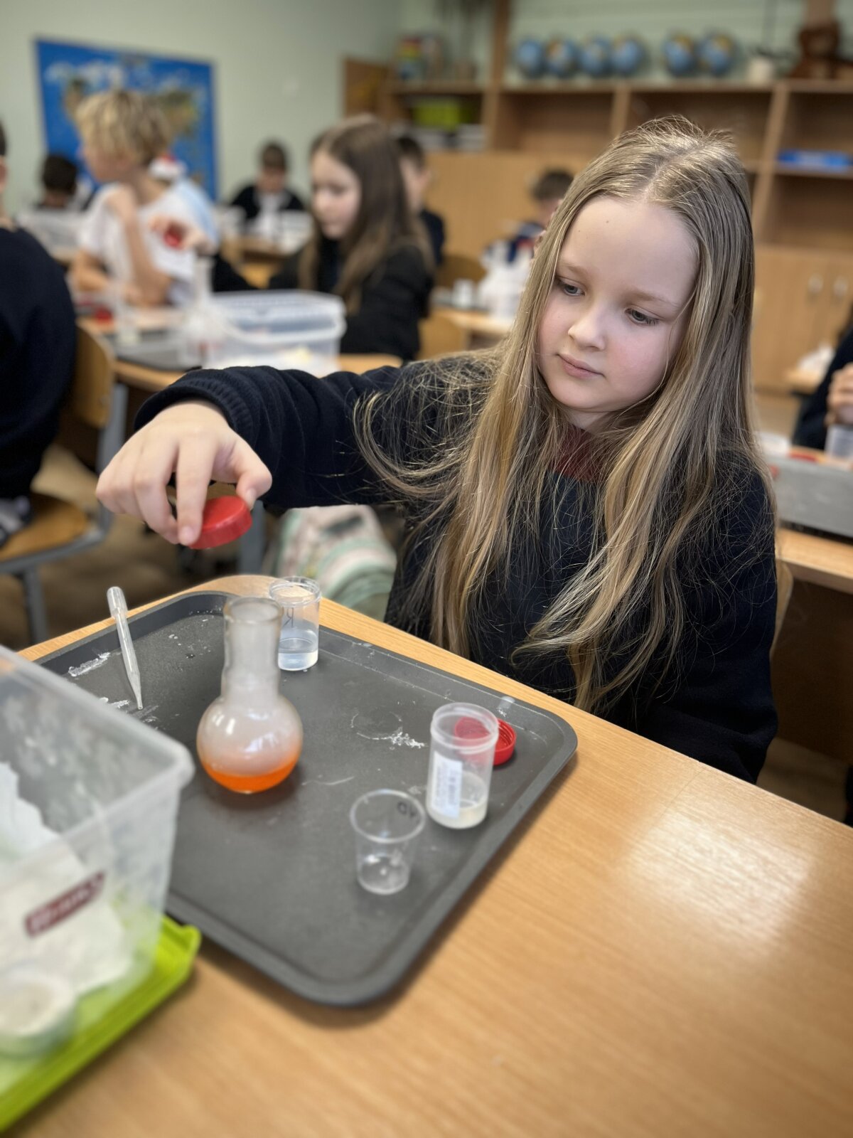 Edukacijos metų 4 A kl. mokiniai pasinerė į stulbinantį oro ir dujų pasaulį, kur mokslas tapo tikru nuotykiu. Mokiniai galėjo stebėti ir patys atlikti kvapą gniaužiančius bandymus, kurė milžiniškus muilo burbulus, pripildytus nematomų dujų, ir stebėjo, kaip paslaptingai keičiasi skysčių spalvos cheminėse reakcijose!