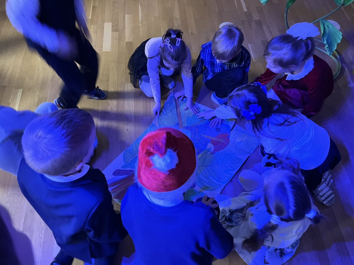 Interaktyvus spektaklis pagal Karlo Orfo metodiką „Naujametiniai nuotykiai Dolli Afrikoje“.