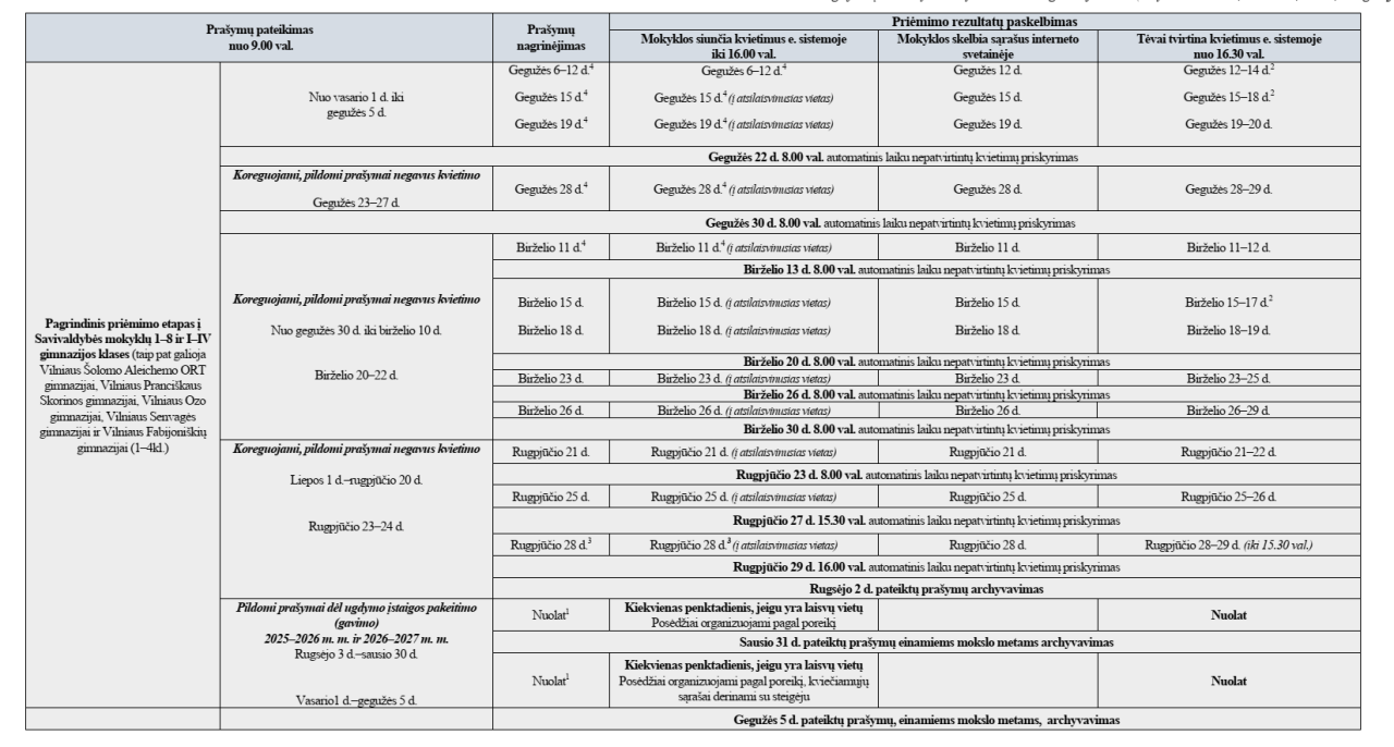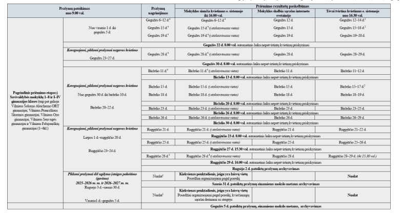 PRIĖMIMO Į VILNIAUS MIESTO SAVIVALDYBĖS BENDROJO UGDYMO MOKYKLAS PER E. SISTEMĄ GRAFIKAS